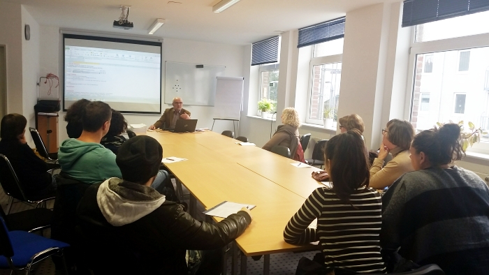 | Interessierte in einem der vielen Vorträge – hier bei Herrn Dr. Christ zum Thema “Fernlernen” |